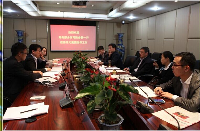 3月23日,商務(wù)部合作司陳林參贊在合作司境外合作處處長陳忠、黃小玲,中國機(jī)電產(chǎn)品進(jìn)出口商會投資促進(jìn)部主任盛國飛的陪同下,蒞臨開元集團(tuán)總部指導(dǎo)工作,集團(tuán)副董事長何永平攜相關(guān)部門、人員對陳參贊一行的到來表示了最熱烈的歡迎,并對開元集團(tuán)的發(fā)展和規(guī)劃進(jìn)行了詳細(xì)匯報。