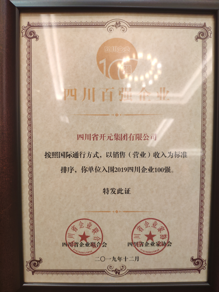 2019年12月17日,2019四川企業100強發布會在成都召開,會上2019四川企業100強新鮮出爐,四川開元集團連續8年入圍四川企業100強。
