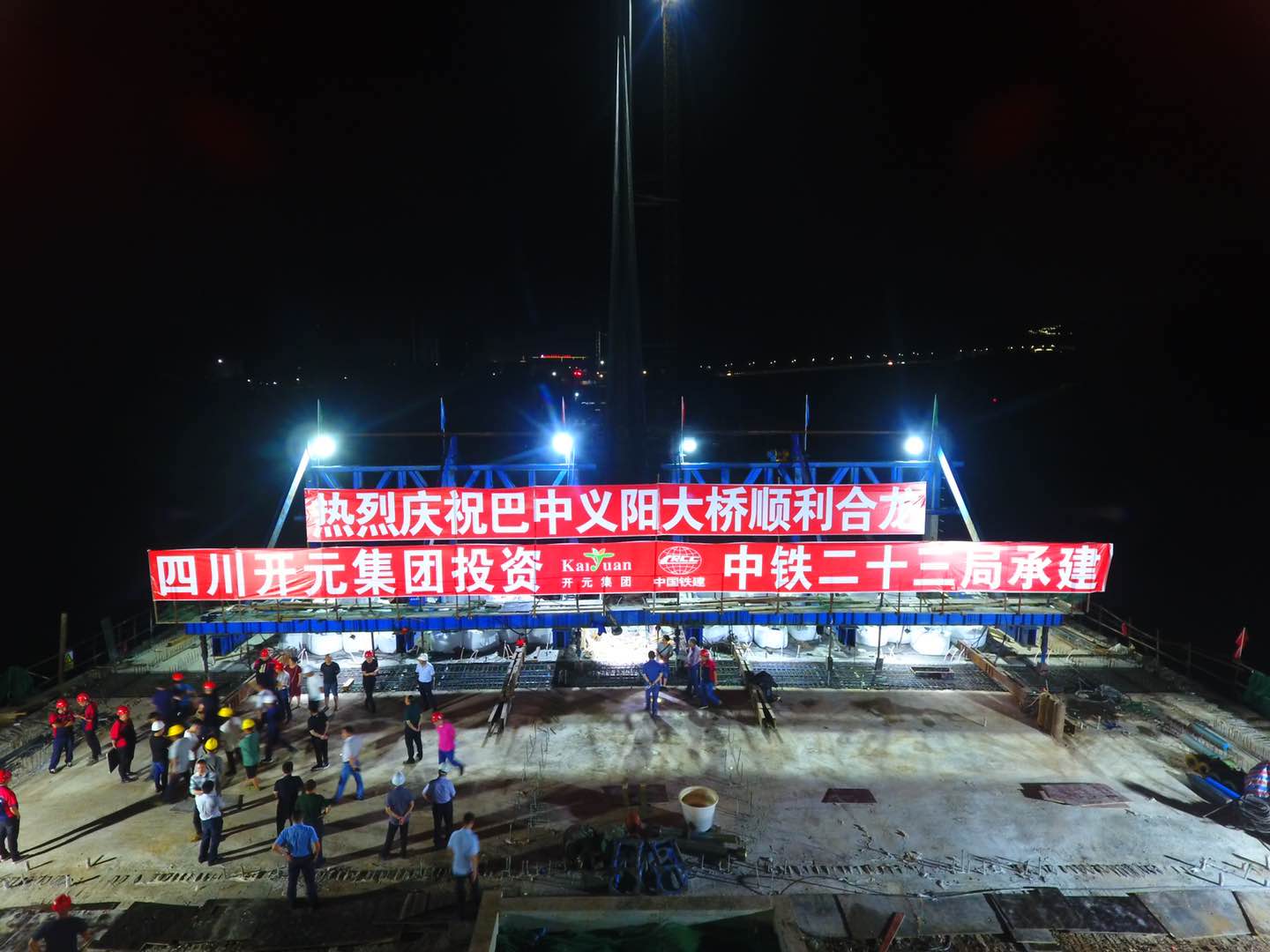 6月28日晚23點,煙花璀璨,鞭炮齊鳴,隨著最后30方混凝土澆灌作業的順利進行,歷時4年建設的義陽大橋實現合龍,標志著巴中以及川東北地區首個特大異型獨臂斜拉橋的主體工程順利完工。巴中恩陽新區,一座嶄新地標巍然屹立。而達成基建狂魔這一新成就的正是四川開元集團。