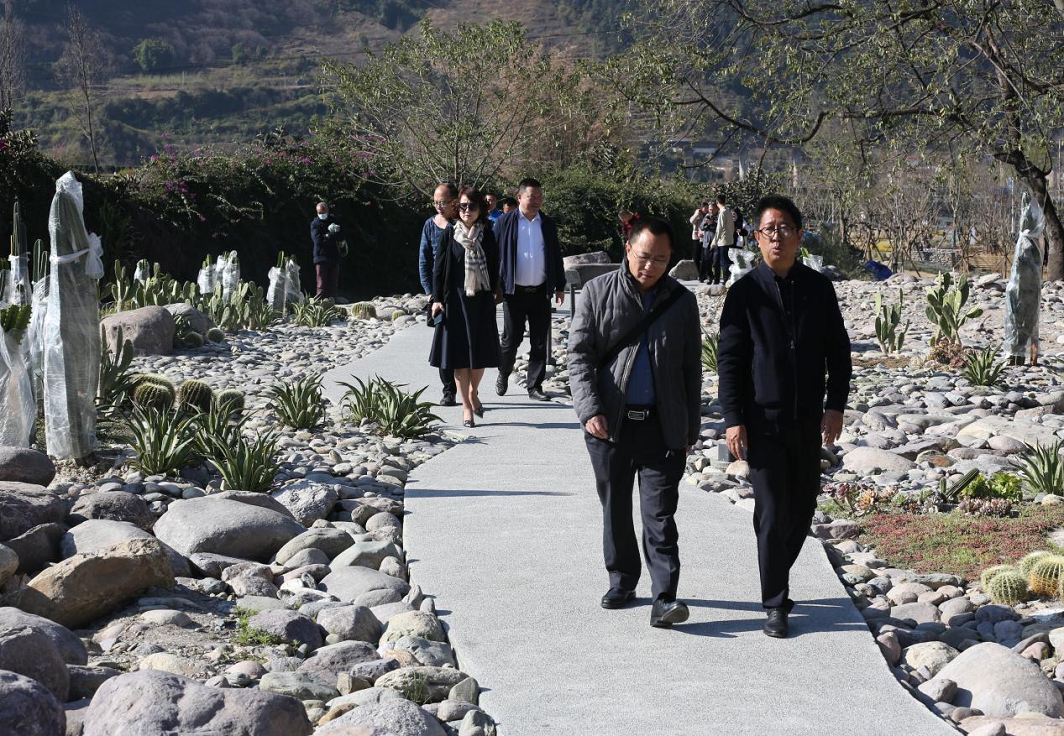 李總陪同客戶一同游覽了公園溪地景觀。在參觀過程中,李總向客戶重點介紹了海花溝特有的安寧河谷氣候以及四季豐富的特色果蔬產出,并帶領客戶登上瞭望臺遠眺螺髻神山。