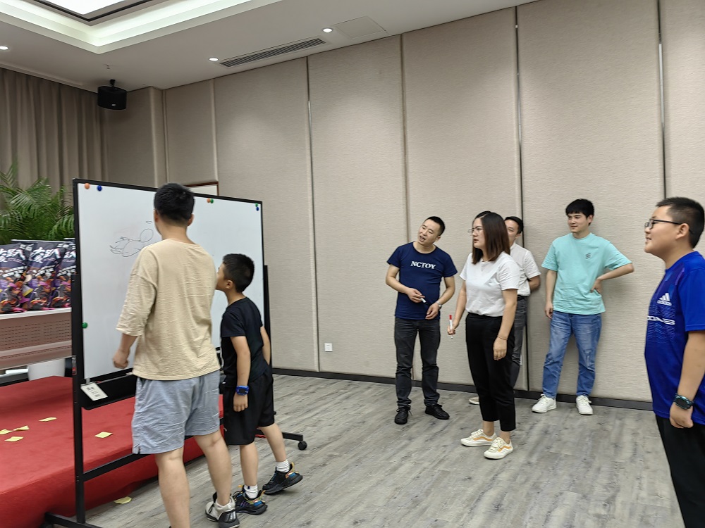 第二個環節是趣味游戲環節,游戲方式主要取自當下熱門娛樂節目《王牌對王牌》的經典游戲,結合公司實際,進行適當演變而成,內容包括“一起搖擺、‘心’火相傳、穿越‘火線’、慧眼識‘珠’、妙筆生花、火眼‘金’睛”等,均為競技類項目。參與人員隨機組成兩個小組進行PK,由工作人員在每輪游戲中對完成時間和完成結果兩個維度進行綜合測評,最終評選出優勝組獲得工會精心準備的零食大禮包。
