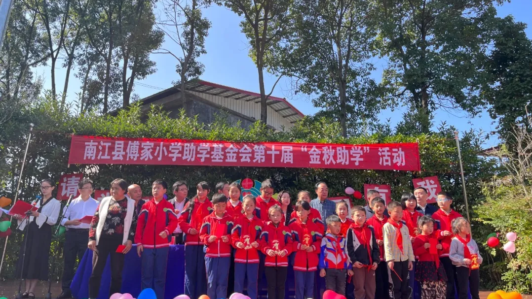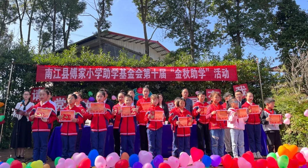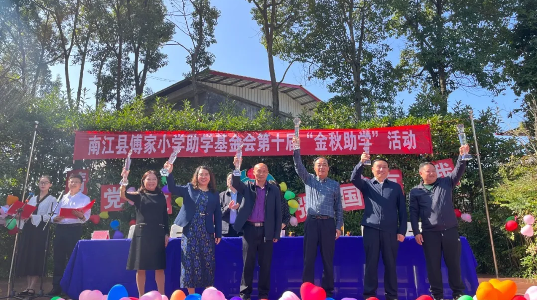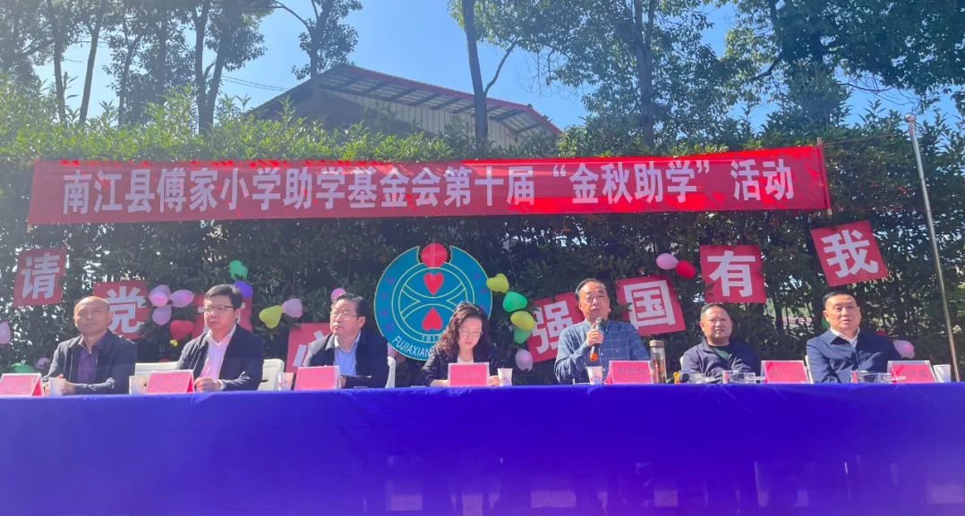 10月23日,南江傅家小學基金會第十屆“金秋助學”活動舉行。南江縣委常委、宣傳部部長吳城蓉,南江縣教科體局黨組書記、局長陳小軍等領導參加活動。巴商總會會長、傅家小學助學基金會理事長、集團董事長趙思儉等愛心人士共30余人參加活動。